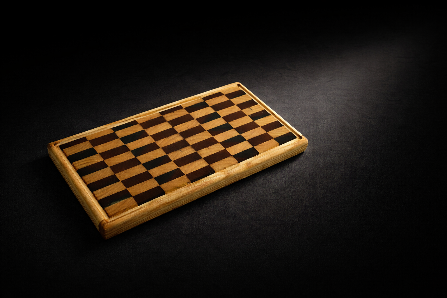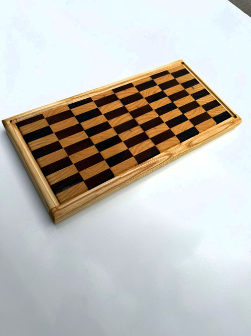 Artisan Seri: Satranç Desenli Masif Ceviz & Dişbudak Kesme ve Sunum Tahtası (43 x 21 x 3 cm)